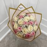 rose white - 10 шт. rose rose - 10 шт. gipsophile - 4 шт.