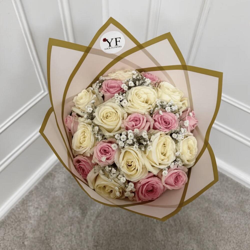 rose white - 10 шт. rose rose - 10 шт. gipsophile - 4 шт.