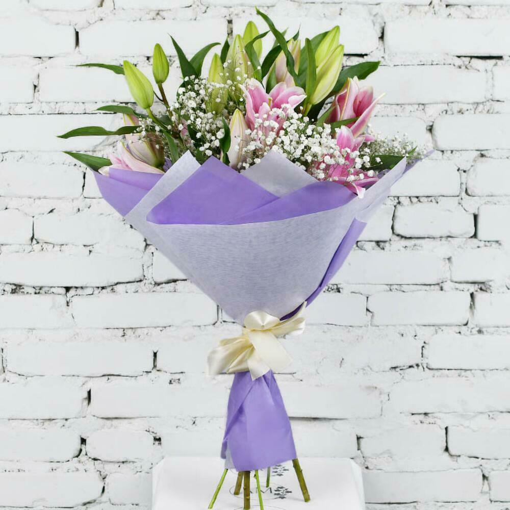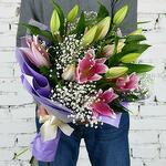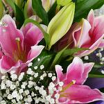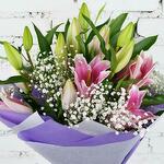Ce bouquet est une véritable incarnation de lélégance et de la couleur. Lys roses aux dimensions généreuses sépanouissent au cœur dun délicat nuage de gypsophiles, créant une impression de légèreté et de grâce. Un choix idéal pour surprendre lêtre aimé.