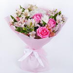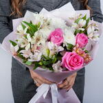 Alstroemeria - 5 шт. rose - 3 шт. emballage - 1 шт. marguerites arbustives - 1 шт.