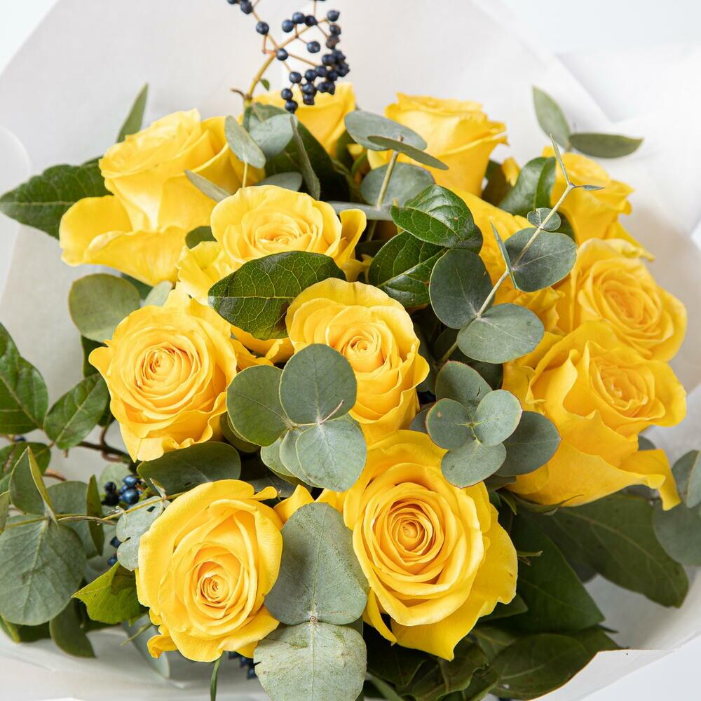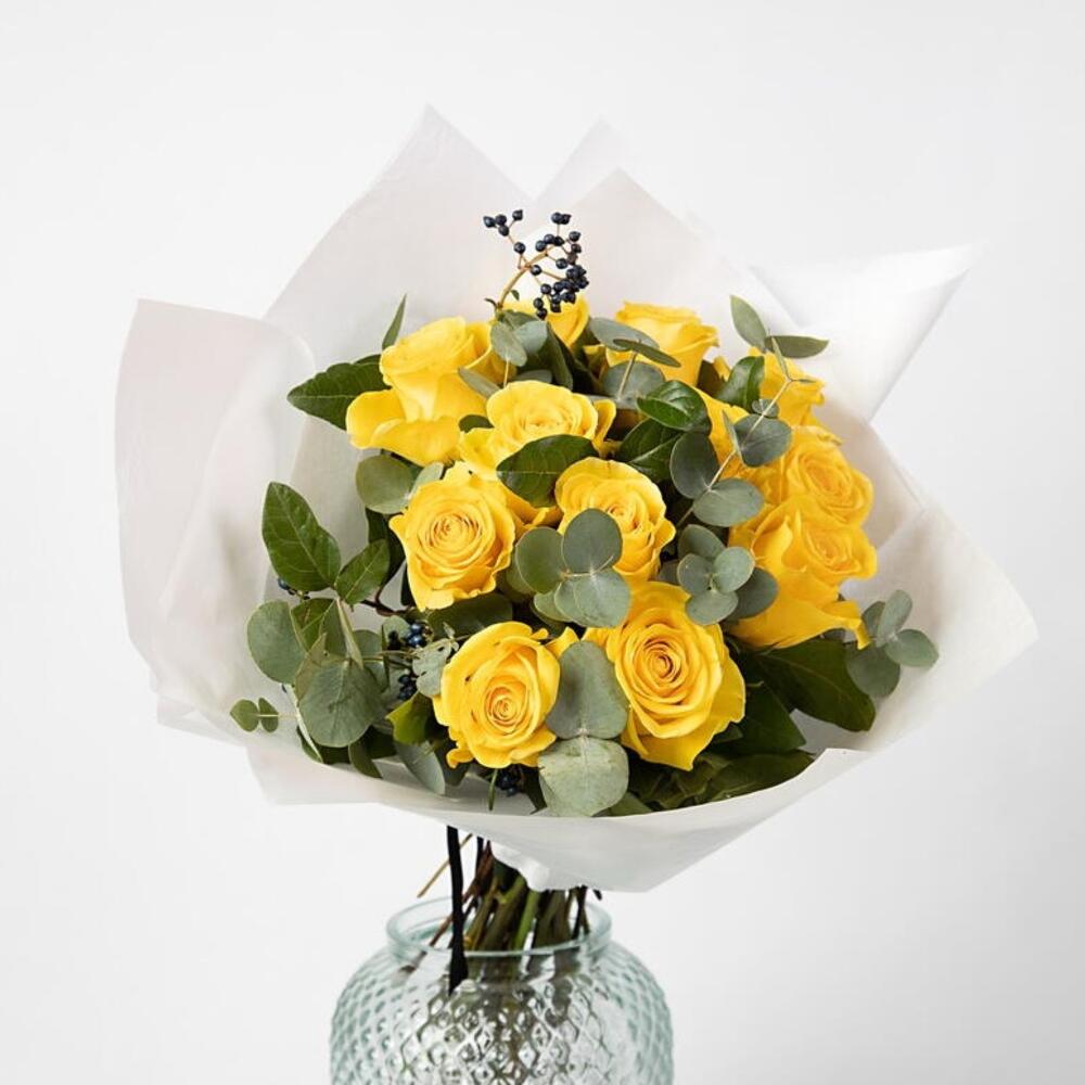 Découvrez le charme de notre bouquet signature, composé de 12 magnifiques roses jaunes, symboles de joie et damitié. Agrémenté de 4 brins deucalyptus cinerea, cet arrangement floral apportera une touche de fraîcheur et délégance à votre intérieur. Chaque fleur a été sélectionnée et préparée avec soin pour une longévité et une beauté optimales.