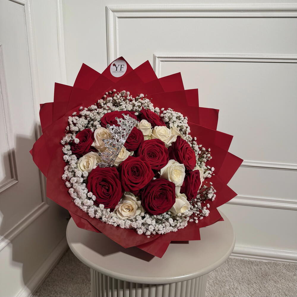 roses rouges - 10 шт. couronne - 1 шт. rose blanches - 10 шт.
