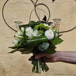 Alstroemeria - 4 шт. Salal - 10 шт. rose blanche - 3 шт. chou - 1 шт. santini vert et bklanc - 2 шт. renoncule blanc - 5 шт. apidistra - 3 шт.