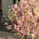 This lovely bouquet features a lovely combination of Light Pink Ranunculus and delicate Chamomile flowers, creating a sweet and fresh arrangement. With a diameter of 45 cm, this composition exudes a sense of calm and tranquility, making it perfect for any occasion.