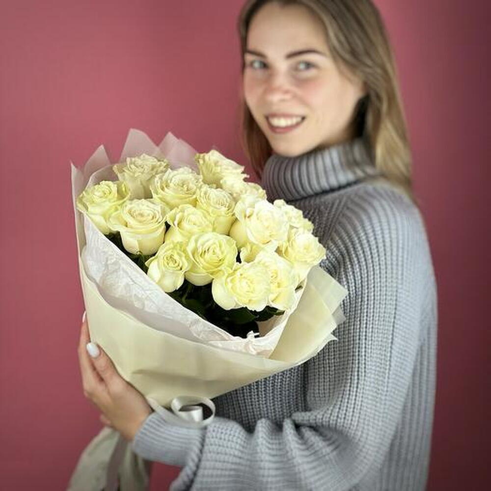 Experience the timeless beauty of our Classic Elegance bouquet, featuring 15 exquisite Mondial white roses. Renowned for their large, velvety petals and pristine, snowy hue, these roses embody purity and sophistication. Perfect for celebrating special moments or expressing heartfelt sentiments, this elegant arrangement is ideal for weddings, anniversaries, or any occasion where a touch of grace is desired. With their understated beauty and refined charm, these white roses make a stunning and memorable gift.