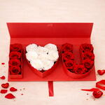 Футляр Я люблю ❤️ тебя красного цвета, состоящий из 21 настоящей вечной розы красного и белого цвета