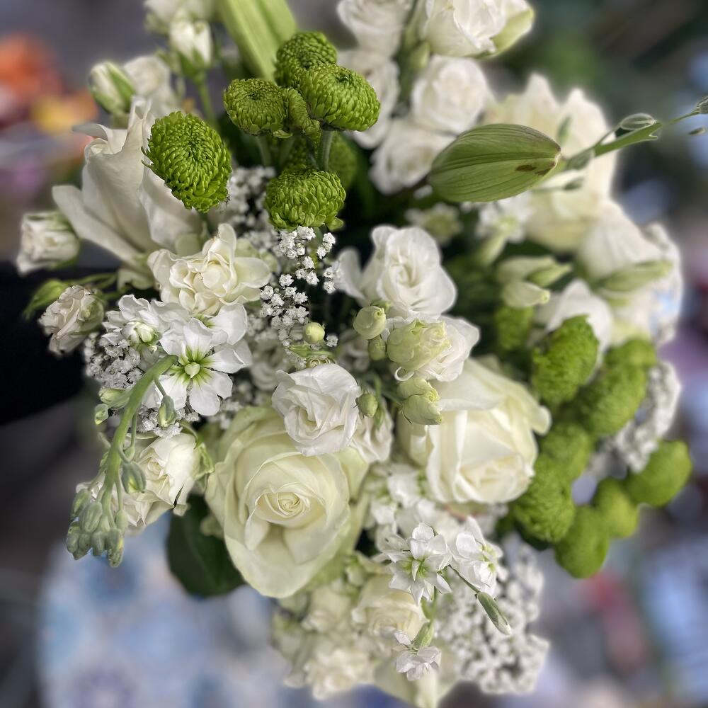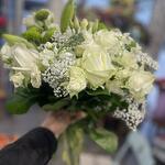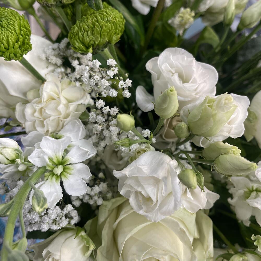 lysianthus - 5 шт. lys - 3 шт. rose blanche - 10 шт. feuillages - 5 шт. gym - 5 шт.