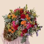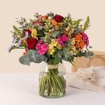 Alstroemeria - 7 шт. aucaliptus - 7 шт. rose rouge - 9 шт. luntisque - 5 шт. gipsophil - 5 шт. oillet brancheau - 5 шт. rose brancheau - 5 шт.
