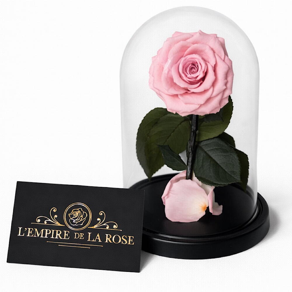 Великолепная вечная роза на стебле под своим стеклянным куполом