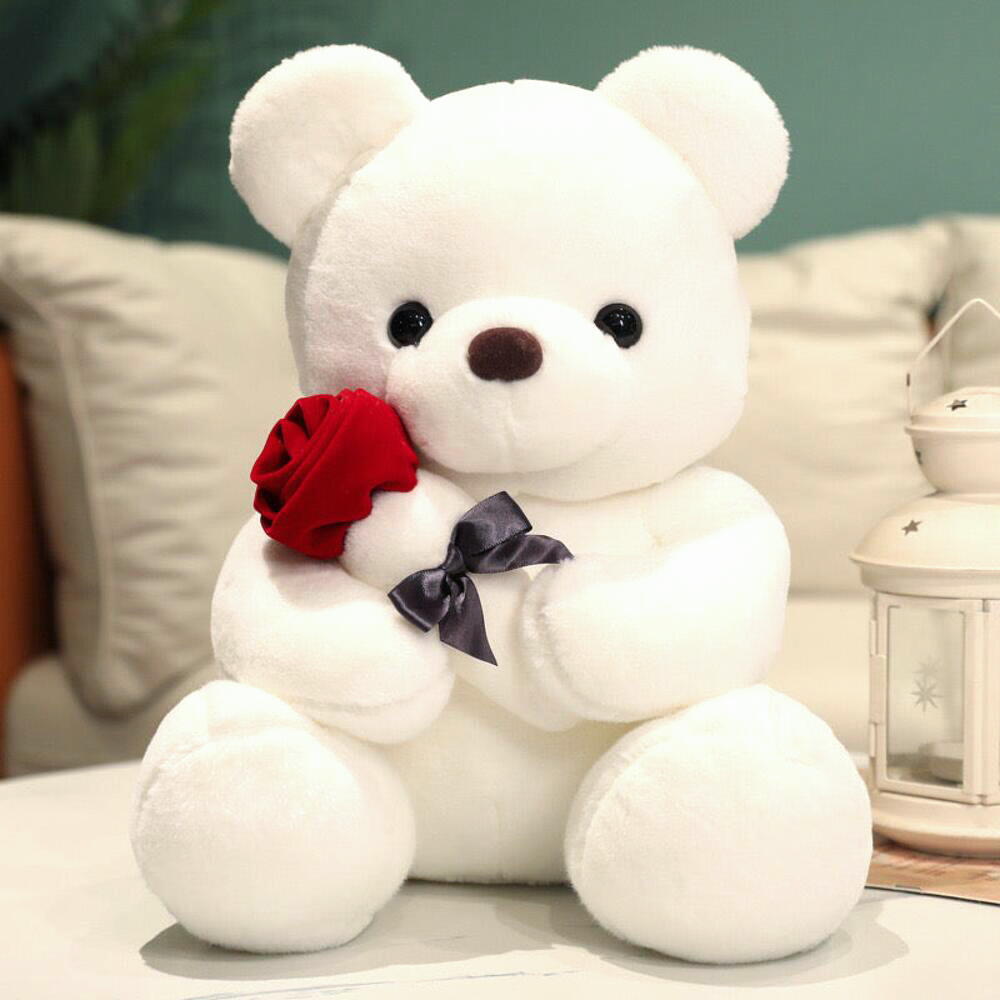 Ours en peluche blanc 25 cm avec rose rouge