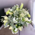 Veronica - 3 шт. Eucalyptus - 3 шт. lisianthus white - 2 шт. белые розы - 7 шт. flox - 3 шт.