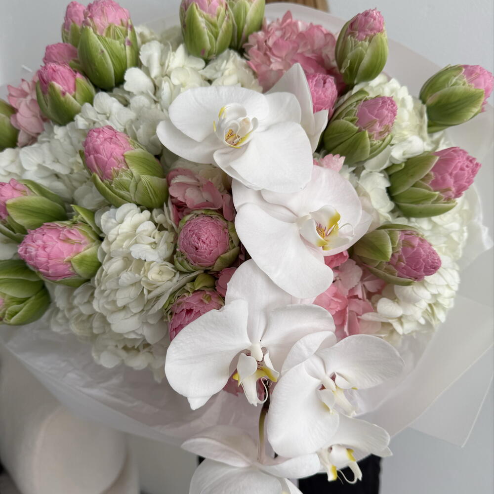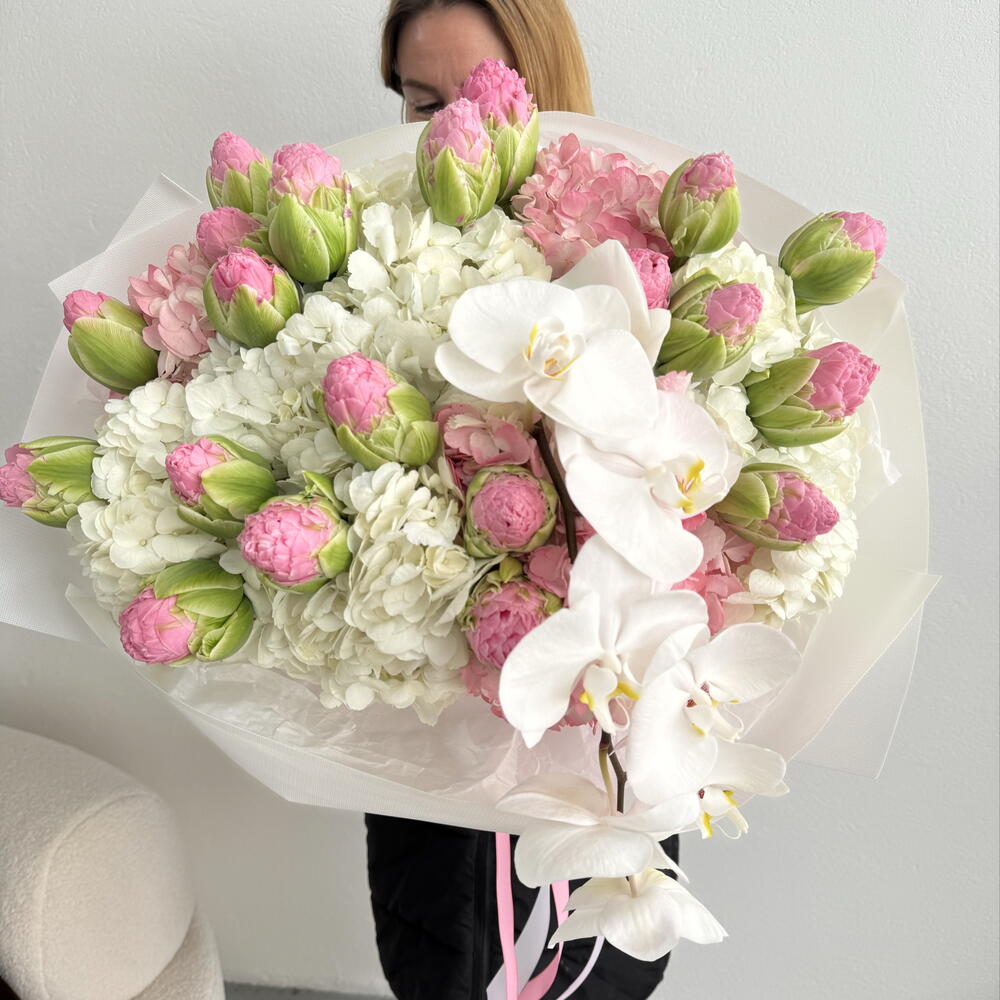 Tulips - 20 шт. hortensia - 10 шт. Orchid - 1 шт.