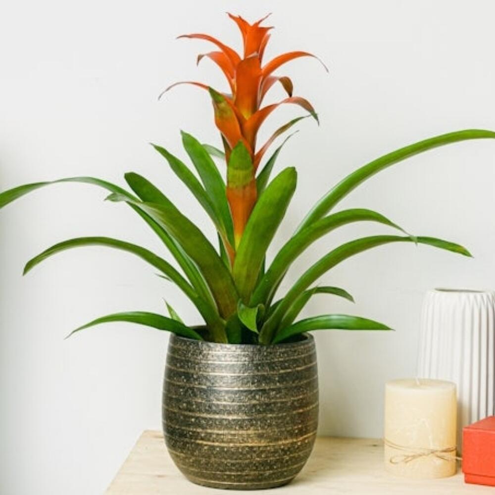 Non-toxique pour les humains et les animaux de compagnie. Soins Lumière : Elle préfère une lumière indirecte abondante. Arrosage : Une ou deux fois par semaine. Vous devez l'arroser en versant un peu d'eau dans le sol et un peu d'eau au centre de la plante. Humidité : Aime être au frais, vaporisez ses feuilles une fois par semaine. Conseil top : Son besoin d'humidité ambiante fait du bromélia une plante parfaite pour la salle de bains, à condition qu'elle ait la lumière nécessaire.