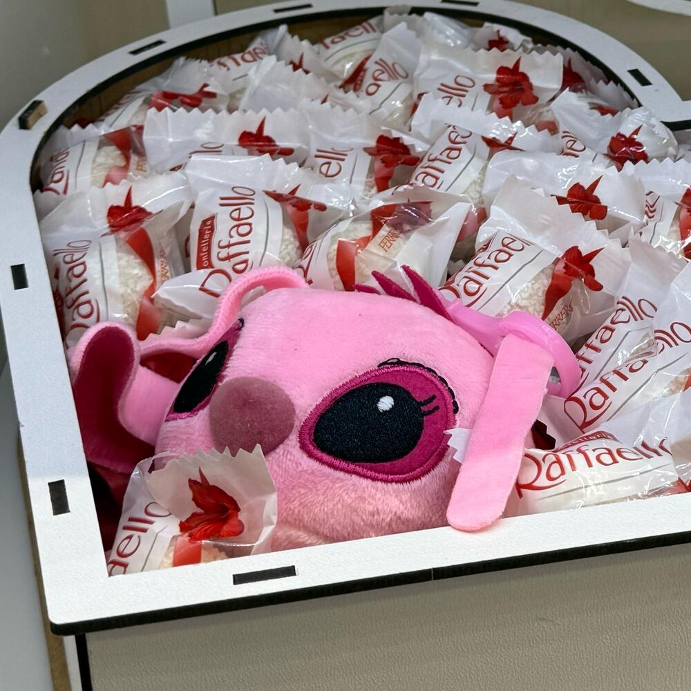 Cette boîte en forme de cœur est un cadeau tout simplement irrésistible pour exprimer votre affection. Remplie de délicieux bonbons Raffaello, chaque bouchée est un vrai délice de douceur et de coco. À lintérieur, un adorable petit ourson rose ajoute une touche de tendresse et de charme, rendant ce cadeau encore plus spécial. Le design élégant de la boîte et la présentation soignée feront de ce cadeau un moment mémorable. Parfait pour la Saint-Valentin, un anniversaire ou tout simplement pour montrer à quelqu’un combien il ou elle compte pour vous. Un cadeau sucré et mignon, qui comblera les papilles et réchauffera le cœur !
